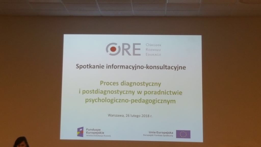 W dniu 26 lutego pracownicy poradni wzięli udział w spotkaniu informacyjno- konsultacyjnym w Warszawie. Tematem konferencji był PROCES DIAGNOSTYCZNY I POSTDIAGNOSTYCZNY W PORADNICTWIE PSYCHOLOGICZNO- PEDAGOGICZNYM. Organizatorem spotkania był Ośrodek Rozwoju Edukacji.